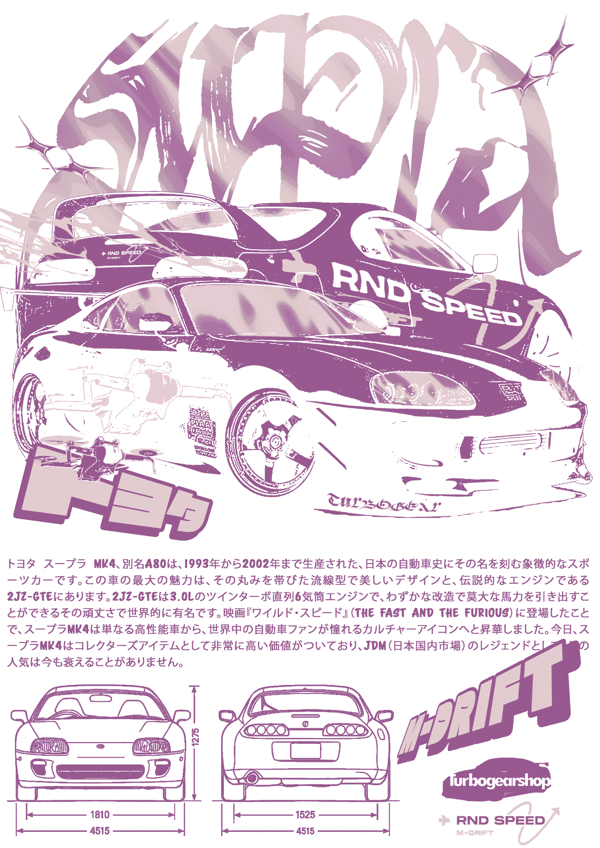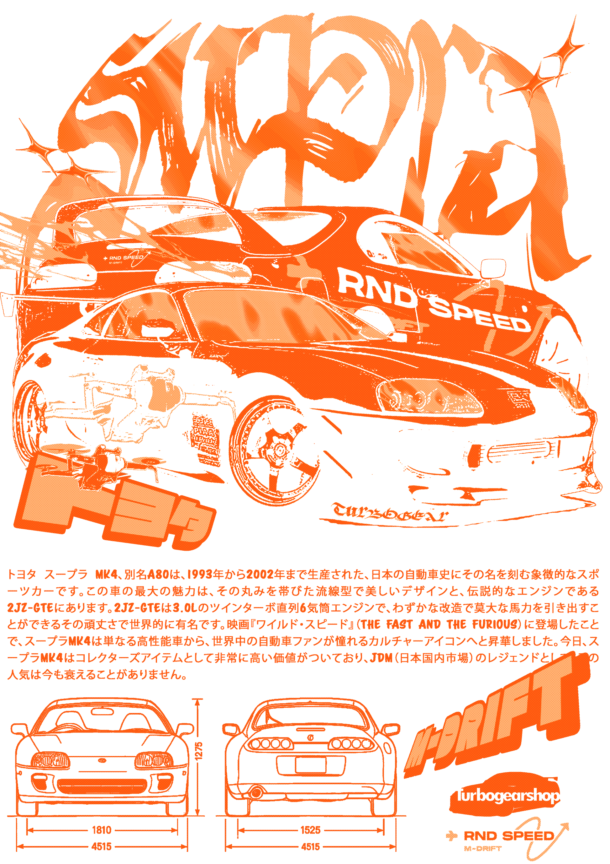 Esta camiseta exclusiva de RND SPEED y Turbogearshop fusiona el estilo de alto rendimiento con la pasión por el automovilismo. Diseñada para entusiastas, ofrece un ajuste cómodo y un tejido resistente, ideal para el día a día o para eventos automovilísticos. Demuestra tu pasión por la velocidad y la precisión con esta camiseta de diseño experto que combina la dinámica marca de RND SPEED y Turbogearshop Supra. Ya sea en la pista o en la calle, ofrece comodidad y una declaración de excelencia automovilística.